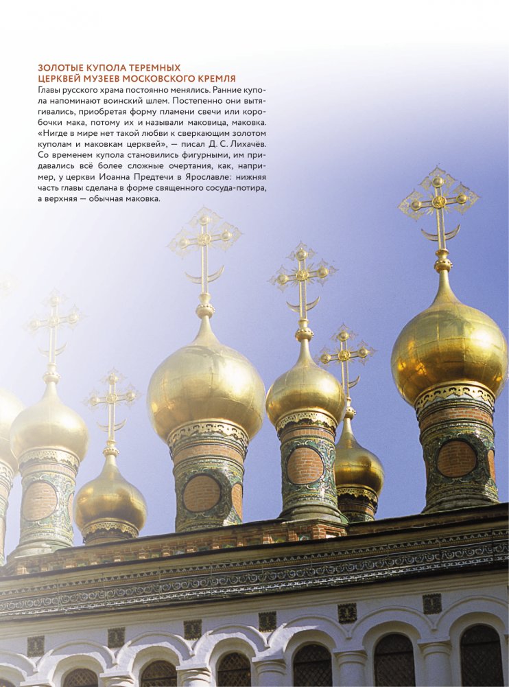 Главы этой книги, написанные признанными искусствоведами, этнографами и историками, рассказывают об истории самых известных и почитаемых храмов и их святынь, особенностях внешнего облика и внутреннего убранства самых знаменитых соборов.