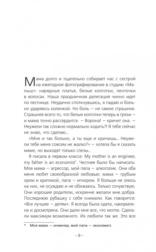 В книге собраны 13 историй, которые помогут разобраться, почему мы так поступаем и что мы можем сделать, чтобы хакнуть вшитую в нас систему воспитания. Нет, здесь не будет готовых рецептов на каждый день — делайте хорошее, а плохое не делайте. Но вы узнаете, как среди разрозненного хора услышать собственный голос. Вы сможете достать все свои скелеты из шкафа и познакомиться с ними, рассмотреть поближе, признать и принять их. Поймете, что вы не одни такие. Получите поддержку и принятие.