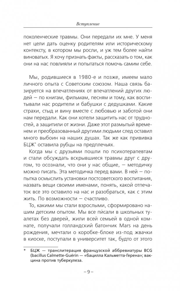 Перед вами не просто книга о психологических установках, это приглашение в путешествие к себе, основа для новой, более свободной, расслабленной и счастливой жизни в современном мире. Эта книга для девочек и мальчиков, которые родились еще в советское время и выросли, пытаясь понравиться каждому, извиняясь за свое существование, боясь сделать новый шаг, позволить себе незнание, ошибку или слабость.