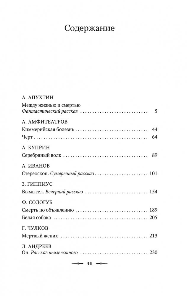 В сборнике публикуются рассказы русских писателей Серебряного века: А. И. Куприна, З. Н. Гиппиус, А. В. Амфитеатрова, Л. Н. Андреева, Б.Олшеври и др.