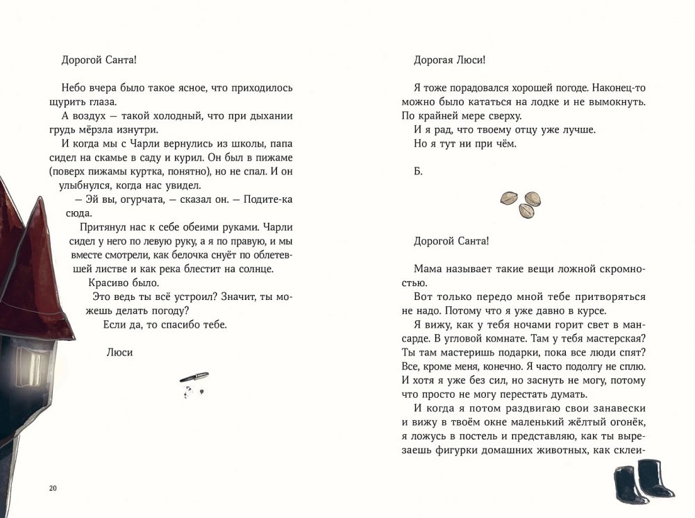 Люси абсолютно уверена: Дед Мороз живет по соседству. Белая борода? Есть. Белые волосы? Есть. Густой и зычный голос, который идеально подходит для восклицания «Хо, хо, хо»? Есть. И что с того, что у него нет красной шубы? Зато есть красная шапка. Даже с помпоном. К тому же соседний дом граничит с лесом, а поляна позади него идеально подходит для выгула оленей. Люси это вполне устраивает, потому что она может отправить свой список желаний прямо ему в почтовый ящик. Есть много вещей, которые она хочет. Например, чтобы папа не был таким грустным. И подружиться с девочками из класса. Вот почему она не сдается, когда в ответном письме говорится, что она ошиблась адресом и ее сосед вовсе не Дед Мороз.