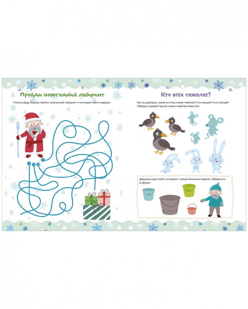 На ярких страницах ребята найдут множество заданий на логику, внимание и сообразительность, смешные рисовалки, лабиринты и задачки. Малыши познакомятся с обаятельными героями — бабушкой Зиной и ее внучкой Машей, помогут птенцу добраться до гнезда, посчитают снегирей, дорисуют недостающие ингредиенты для вкусного пирога и сосчитают снежинки. Сказочная зимняя атмосфера, красочные иллюстрации, остроумные головоломки, развивающие упражнения — девочкам и мальчикам точно не придется скучать!