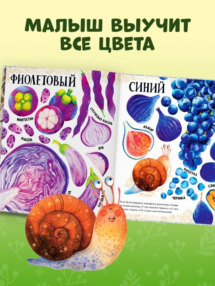 Улитка Элли познакомит малыша с самыми разными фруктами и овощами и поможет выучить цвета. Яркая книжка в мягкой обложке понравится детям!