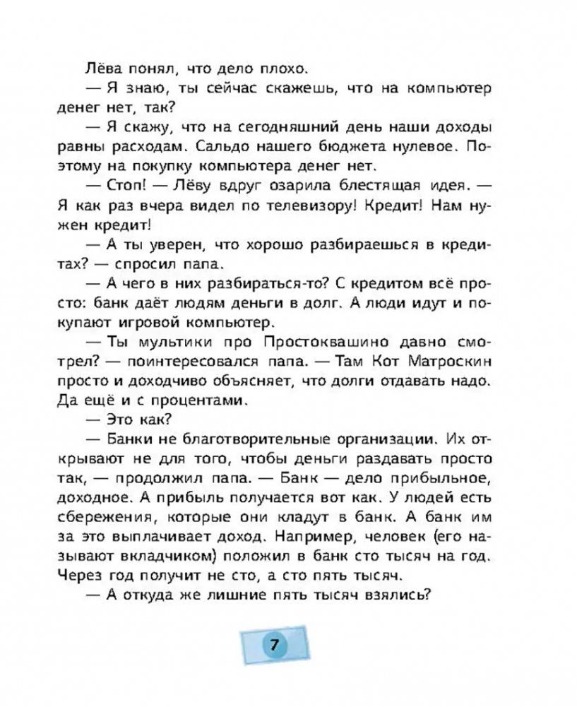 Лёва мечтает о мощном игровом компьютере, но семейный бюджет такой покупки не выдержит. Что же, выходит, мечта не сбудется? Лёва готов пойти работать, но ему всего лишь двенадцать. Детям работать запрещено! Взять кредит? Увы, ещё Матроскин предупреждал, что долги придётся отдавать! Есть ли выход из этого финансового тупика? В результате плана, который предложили родители, Лёва оказывается в городке на Волге, где у его дяди есть небольшой книжный магазин. В гостях у родственников герой находит новых друзей, знакомится с историей предков-купцов и помогает приюту для енотов, но главное - открывает для себя устройство экономики.
