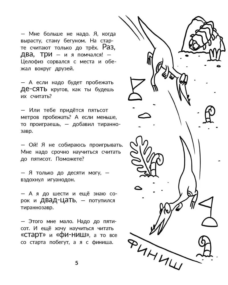 Маленькому тираннозавру непременно нужно узнать, сколько у него зубов, а игуанодон мечтает научиться подписывать свои картины. Вместе с друзьями они решают отправиться в школу, чтобы научиться считать и познакомиться со всеми буквами алфавита. Следуй за героями и узнай, где в доисторическом лесу прячутся буквы, потренируйся в чтении и счёте, помоги динозаврикам выполнить задания учителя аллозавра. В середине книги ты найдёшь плакат с динозаврами и алфавитом, благодаря которому не только легко запомнишь каждую букву, но и научишься быстро читать и произносить самые сложные названия доисторических ящеров. Для младшего школьного возраста.