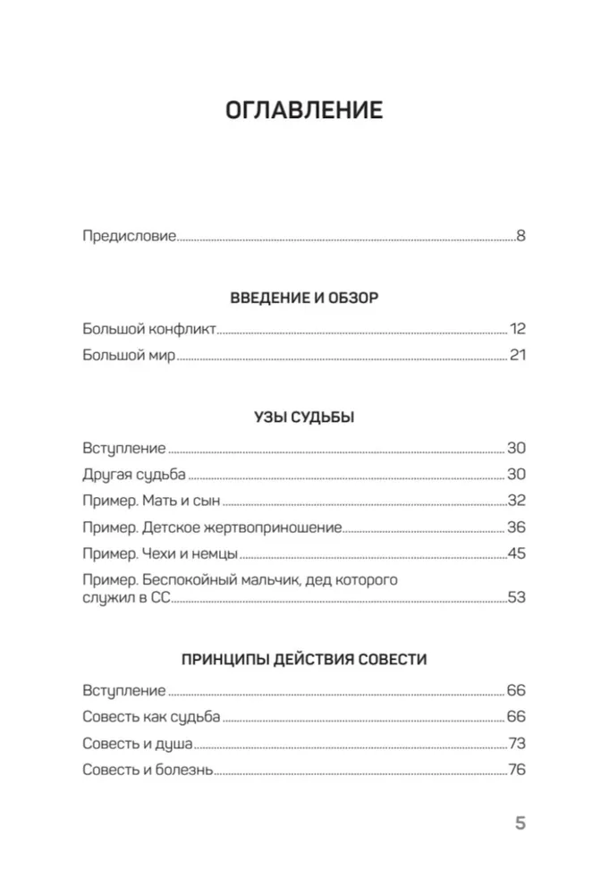 Берт Хеллингер рассматривает душевные механизмы, которые приводят к большим конфликтам, войнам между народами и религиями. Конфликты - часть жизни человека. Маленькие, повседневные конфликты - это нормально. Они служат расширению наших границ и, в конечном итоге, росту. Это контрастирует с крупными конфликтами, такими как конфликты между народами и этническими группами. В них проявляется воля к уничтожению. Автор возлагает ответственность за убийственную динамику непримиримых конфликтов на убеждения - обычно в сочетании с идеологией - и, как следствие, на чистую совесть обоих участников конфликта. Такая совесть видит в другом только зло и отвергает в нем все человеческое.