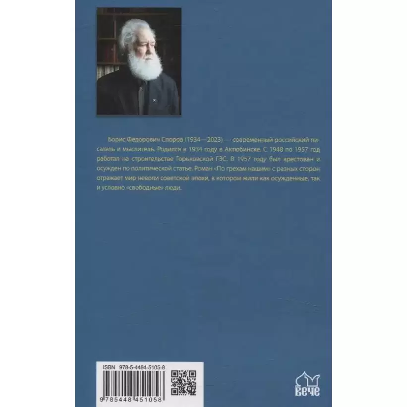 Борис Федорович Споров (1934-2023) - современный российский писатель и мыслитель. Родился в 1934 году в актюбинске. С 1948 по 1957 год работал на строительстве Горьковской ГЭС. В 1957 году был арестован и осужден по политической статье. Роман "По грехам нашим" с разных сторон отражает мир неволи советской эпохи, в котором жили как осужденные, так и условно "свободные" люди.