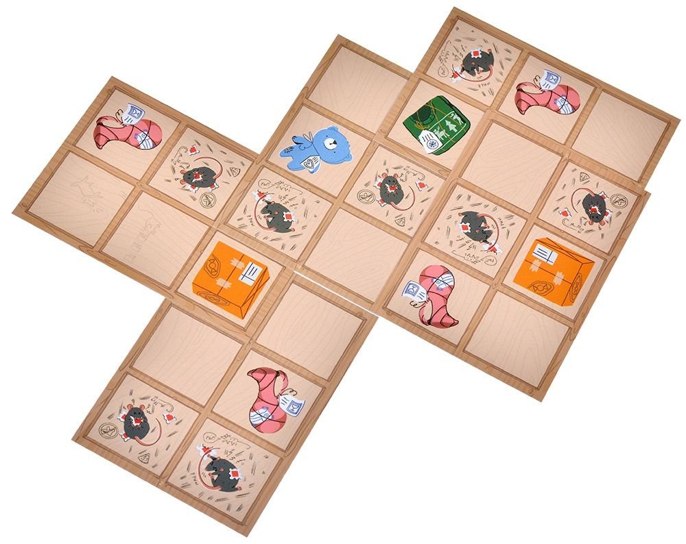 Накладывайте карты друг на друга! Закрывайте вредных мышей! Соберите как можно больше рядов и столбцов с разными посылками, чтобы победить.