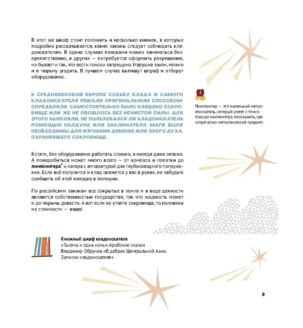 Кладоискательство лишь на первый взгляд кажется легкомысленным увлечением и наивной детской мечтой о несметных богатствах. Но за каждым кладом - найденным или пока ещё скрытым от людей - стоит история, проливающая свет на тайны ушедших веков. Откуда берутся клады? Где их искать? Почему не всякий клад можно найти? Книга познакомит с историей самых знаменитых кладов; расскажет истории о сокровищах, которые пока не желают открываться людям; раскроет секреты знаменитых кладоискателей. Для среднего школьного возраста.