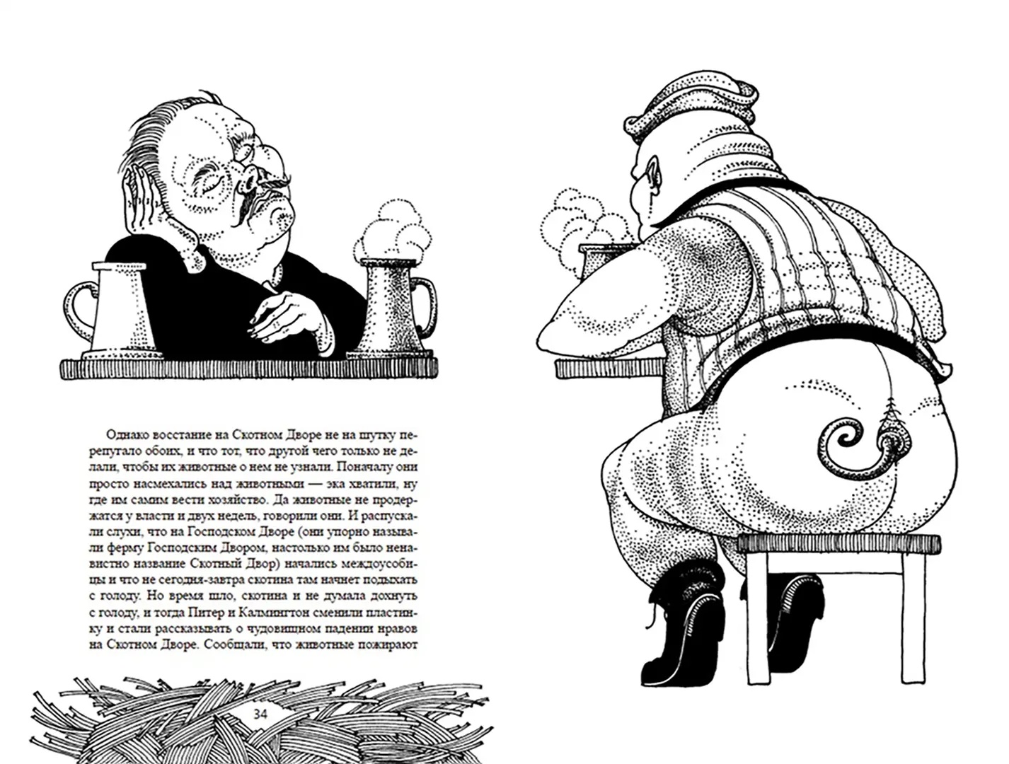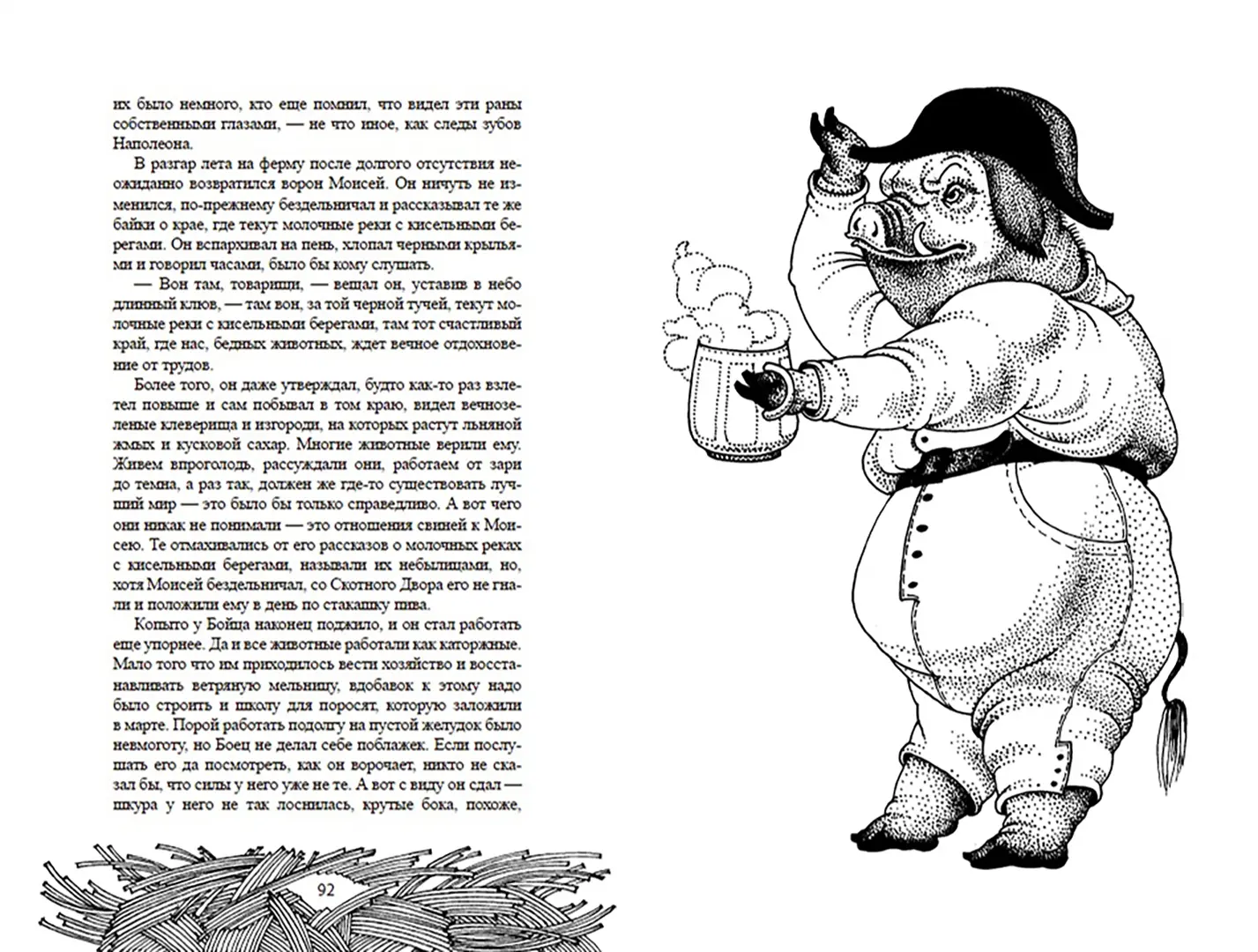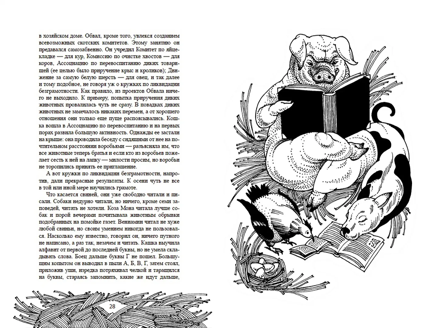 Острая, пропитанная мудростью притча британского писателя Джорджа Оруэлла (1903-1950). Великолепные образы, хлесткий язык, тонкая сатира... Блестящая интерпретация того, как "всеобщие свобода, равенство, братство" могут исподволь и незаметно перерасти 6 тоталитарный режим и беспредел правящей верхушки.