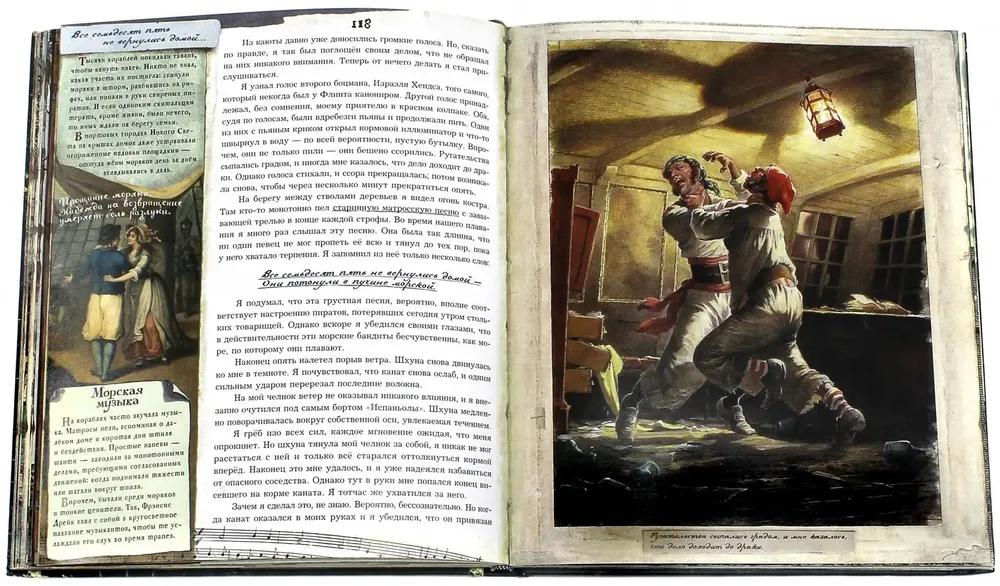 Знаменитый роман Роберта Льюиса Стивенсона в сопровождении подробного историко-бытового комментария, посвященного морскому делу в Англии XVIII века и "золотому веку" пиратства. Рисунки, гравюры, карты, страницы из книг того времени, интерактивные элементы помогают воссоздать живую атмосферу эпохи.