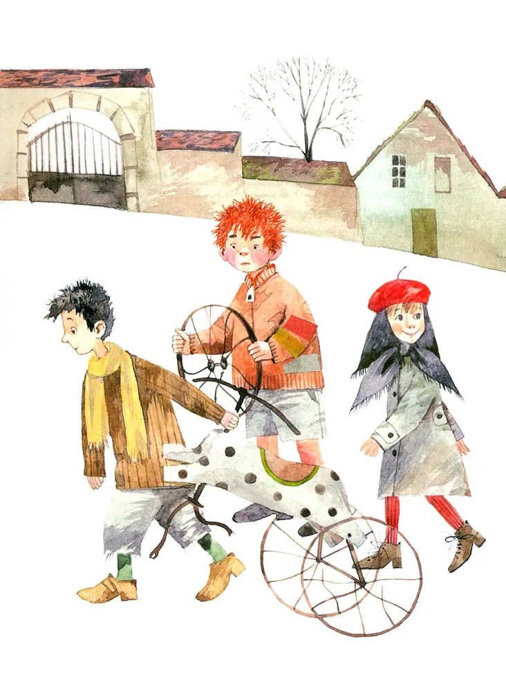 Начало 1950-х, Франция. В маленьком городке Лювиньи инспектору полиции достаются лишь незначительные дела: о кошке, съевшей канарейку, или о краже игрушечной трехколесной лошадки у детей с улицы Маленьких Бедняков. И кто бы мог подумать, что столь нелепая пропажа поможет выйти на след, который не смогли обнаружить лучшие сыщики страны! Замечательные иллюстрации Надежды Бугославской как нельзя лучше передают колорит и мягкий юмор этой удивительной истории.