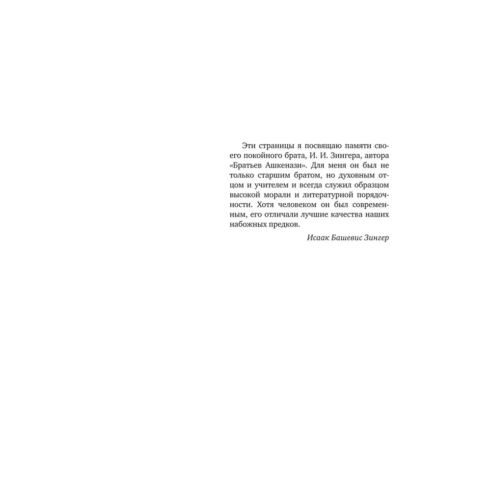 Выдающийся писатель, лауреат Нобелевской премии Исаак Башевис Зингер (1904-1991) посвятил роман "Семья Мускат" (1950) памяти своего старшего брата. Посвящение подчеркивает преемственность творческой эстафеты, - ведь именно Исроэл Йошуа Зингер своим знаменитым произведением "Братья Ашкенази" заложил основы еврейского семейного романа.