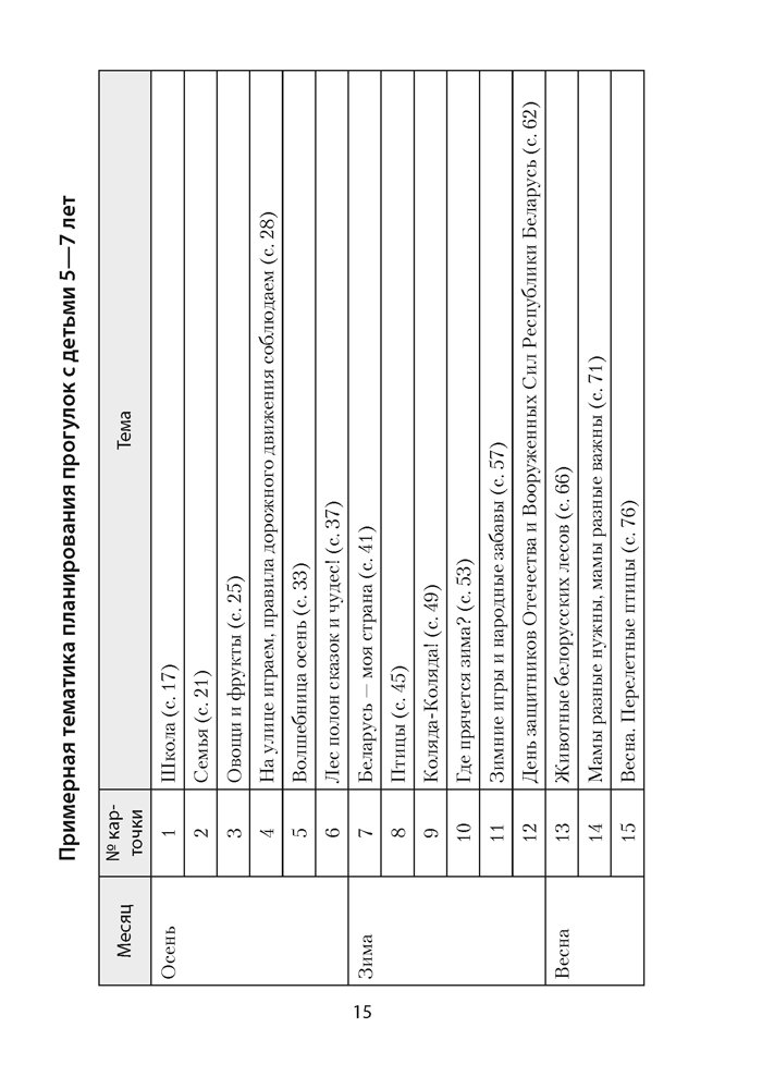 Пособие раскрывает суть, значение и структуру прогулки в дошкольном учреждении, включает тематические планкарты.