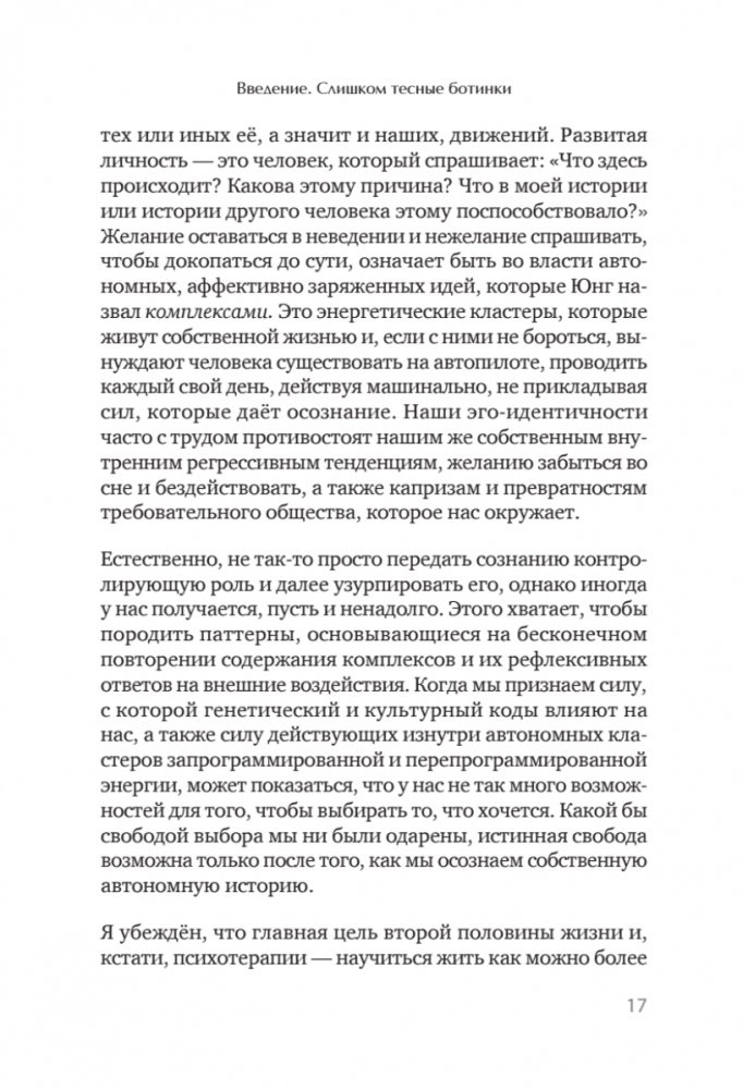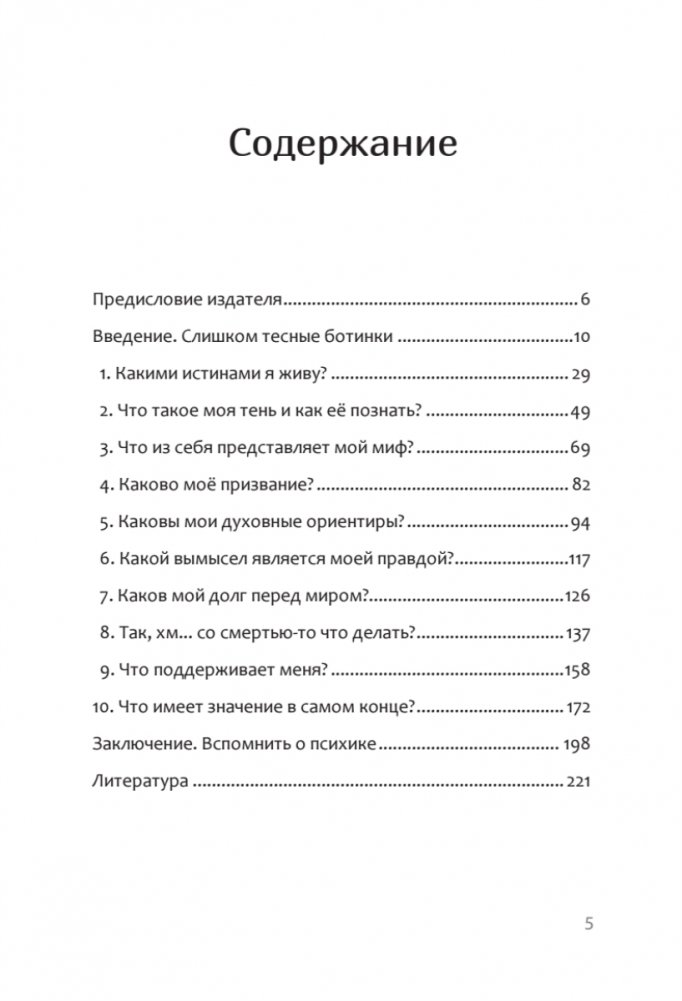 Эта книга не повторяет известные истины, она вообще не занимается "истинами". Автора больше интересуют вопросы, поиск ответов на которые вызывают новые, еще более глубокие вопросы. Холлис уверен: чем больше вопросов, тем более интересным и духовно богатым становится путешествие, которое мы называем жизнью. Автор делится своим опытом лишь для того, чтобы мы смогли лучше понять себя, и надеется, что, живя этими вопросами, мы сможем переносить тяготы жизни более осознанно.