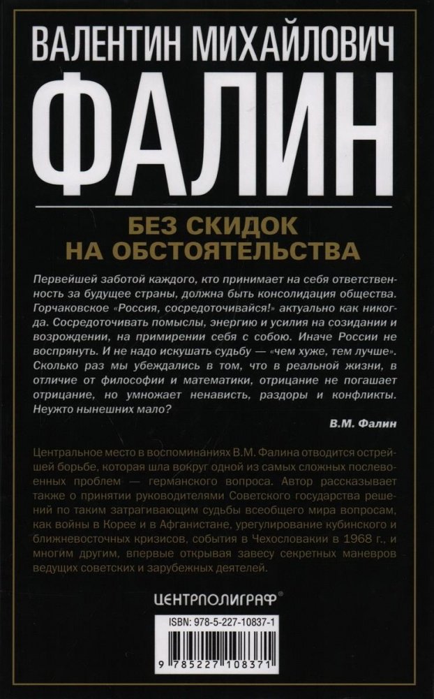 Центральное место в воспоминаниях В. М. Фалина отводится острейшей борьбе, которая шла вокруг одной из самых сложных послевоенных проблем — германского вопроса. Автор рассказывает также о принятии руководителями Советского государства решений по таким затрагивающим судьбы всеобщего мира вопросам, как войны в Корее и в Афганистане, урегулирование кубинского и ближневосточных кризисов, события в Чехословакии в 1968 г., и многим другим, впервые открывая завесу секретных маневров ведущих советских и зарубежных деятелей.