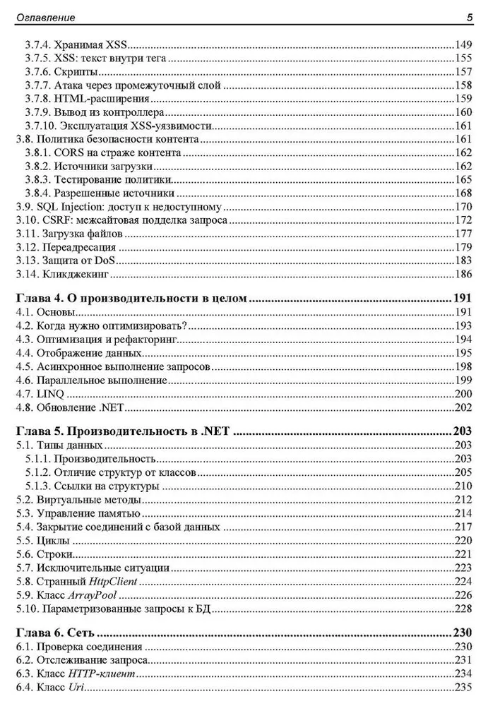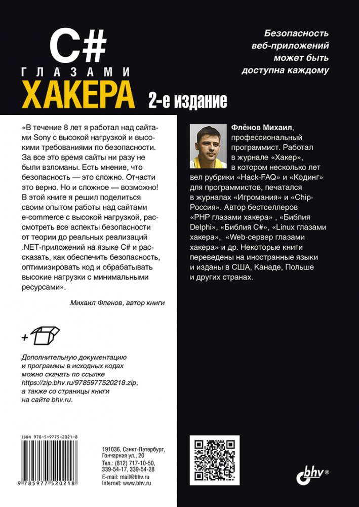 Подробно рассмотрены все аспекты безопасности от теории до реальных реализаций .NET-приложений на языке C#. Рассказано, как обеспечивать безопасную регистрацию, авторизацию и поддержку сессий пользователей. Перечислены уязвимости, которые могут быть присущи веб-сайтам и Web API, описано, как хакеры могут эксплуатировать уязвимости и как можно обеспечить безопасность приложений. Даны основы оптимизации кода для обработки максимального количества пользователей с целью экономии ресурсов серверов и денег на хостинг. Рассмотрены сетевые функции: проверка соединения, отслеживание запроса, доступ к микросервисам, работа с сокетами и др. Приведены реальные примеры атак хакеров и способы защиты от них. Во втором издании добавлены новые примеры безопасности, рассмотрены вопросы реализации технологий OAuth2 и Single Sign On.