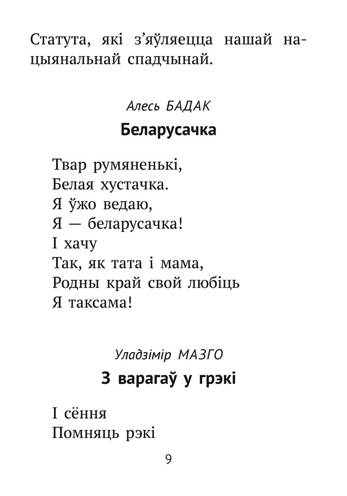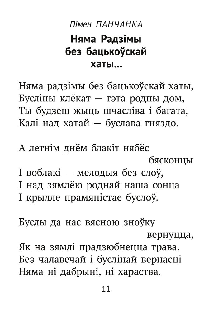 Хрэстаматыя ўключае найбольш каштоўныя і значныя творы для пазакласнага чытання, якія пакуль не ўваходзяць у спіс абавязковых для прачытання. Паэзія і проза сучасных беларускіх пісьменнікаў, творы любімых класікаў пазнаёмяць маленькіх чытачоў з прыгажосцю роднай мовы, натхняць на вывучэнне беларускай культуры, традыцый і гісторыі.