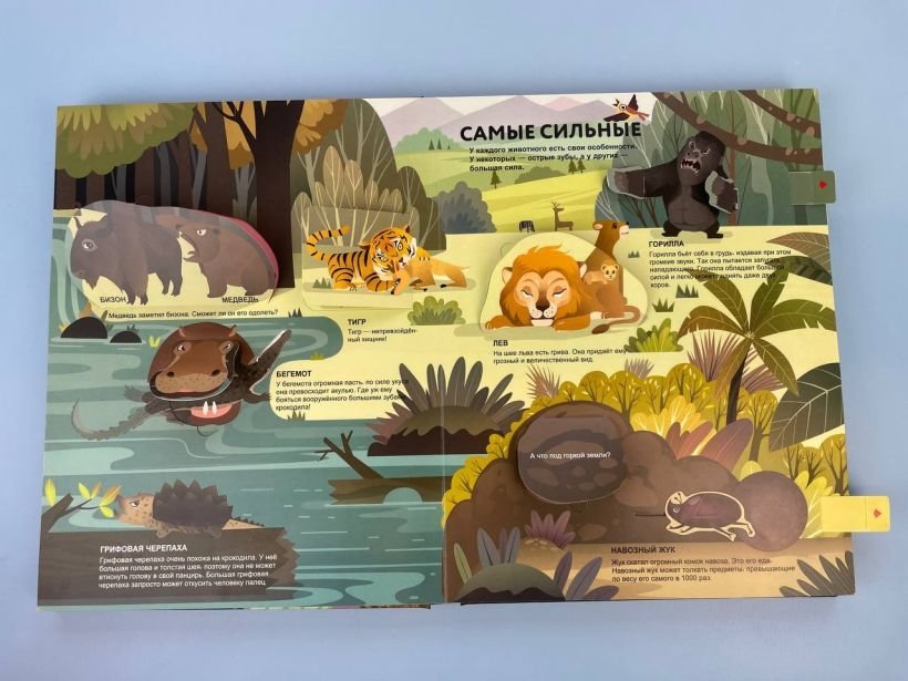 В 3d-книге "Удивительные животные" ты узнаешь, где обитают разные животные, как они охотятся и каким образом заботятся о потомстве. Умеют ли черепахи бегать? А сколько часов в день спит коала? Почему зебра полосатая? Кто из насекомых самый сильный? Ответить на все вопросы тебе помогут познавательные окошки, подвижные элементы у разнообразных животных, а также великолепная панорама джунглей! Скорее открывай все окошки – будет интересно!