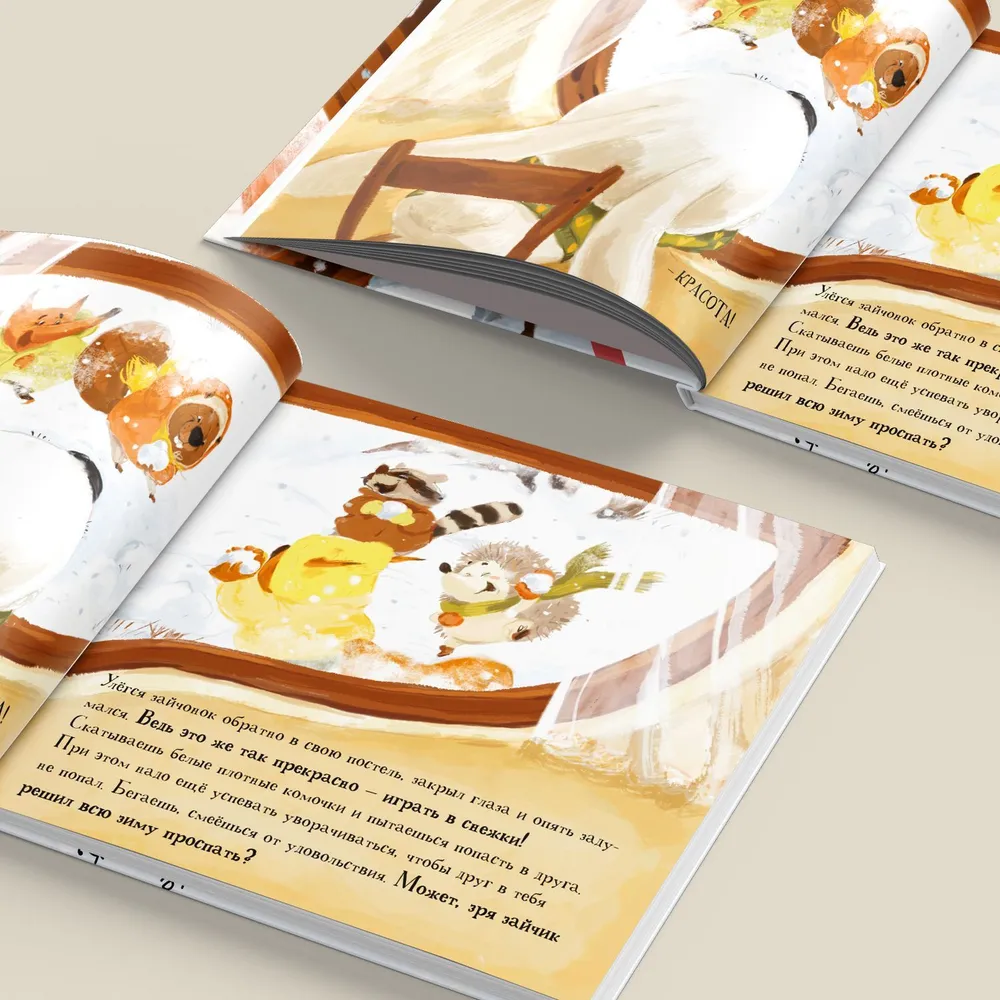 В серии «Уютные книжки» мы собрали для вас добрые сказки современных писателей, которые будет интересно читать и детям и взрослым. Сказка «Зайчонок, выходи!» детского писателя Станислава Секретова рассказывает о любопытном зайчонке, который решил, как друзья-медведи, лечь на зиму в спячку. Трогательный сюжет и красочные иллюстрации подарят вам и вашему малышу незабываемые эмоции и создадут чудесную атмосферу, стоит только открыть книжку. Проведите вечер уютно вместе с Malamalama!