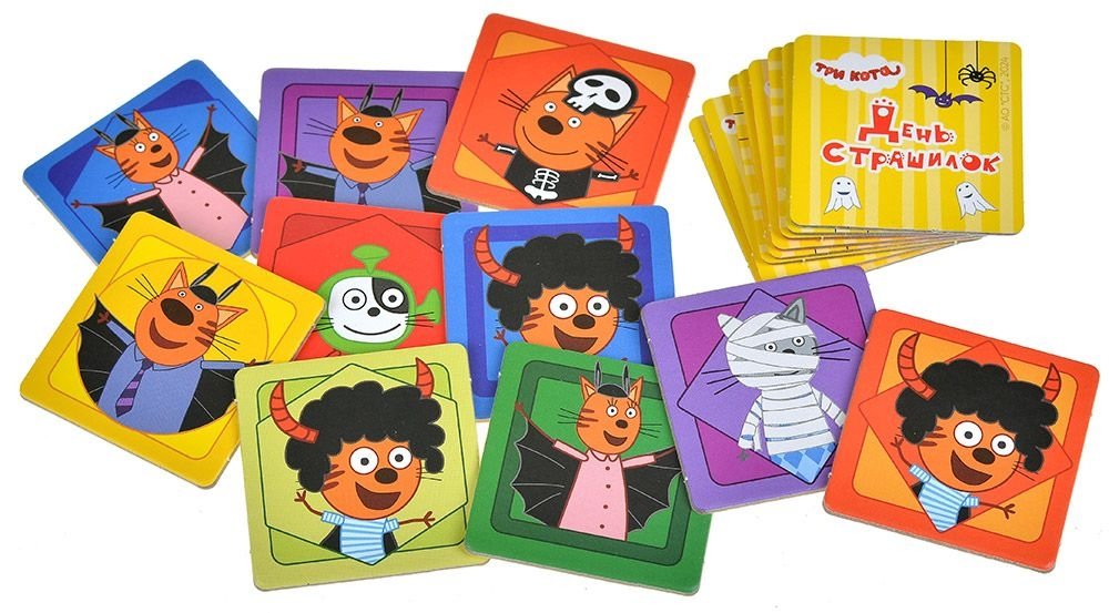Котята празднуют День страшилок! Они украсили всё вокруг бумажными паучками и привидениями, оделись в страшные (но не очень) костюмы и все вместе веселятся! Присоединяйтесь к празднику! Открывайте жетоны, рассматривайте любимых героев мультсериала в праздничных костюмах и постарайтесь сопоставить жетоны с картинками на своём планшете. Будет страшно... страшно весело!