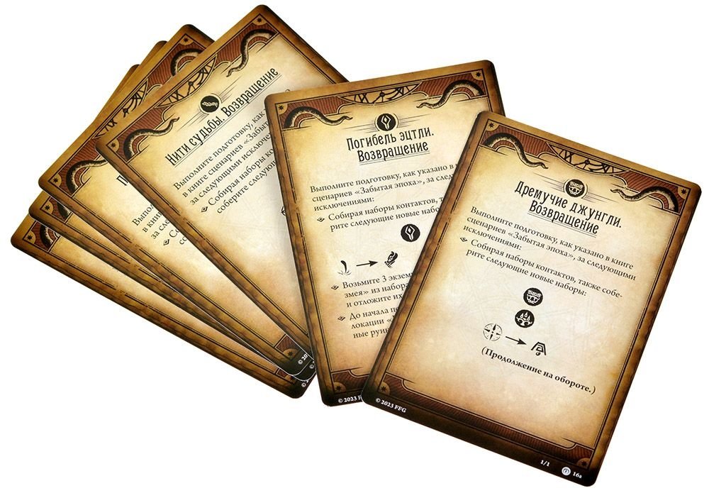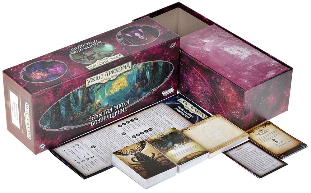 "Забытая эпоха. Возвращение" – дополнение для карточной игры "Ужас Аркхэма", командной игры для 1-4 игроков, которые в роли сыщиков будут разгадывать леденящие кровь потусторонние тайны.