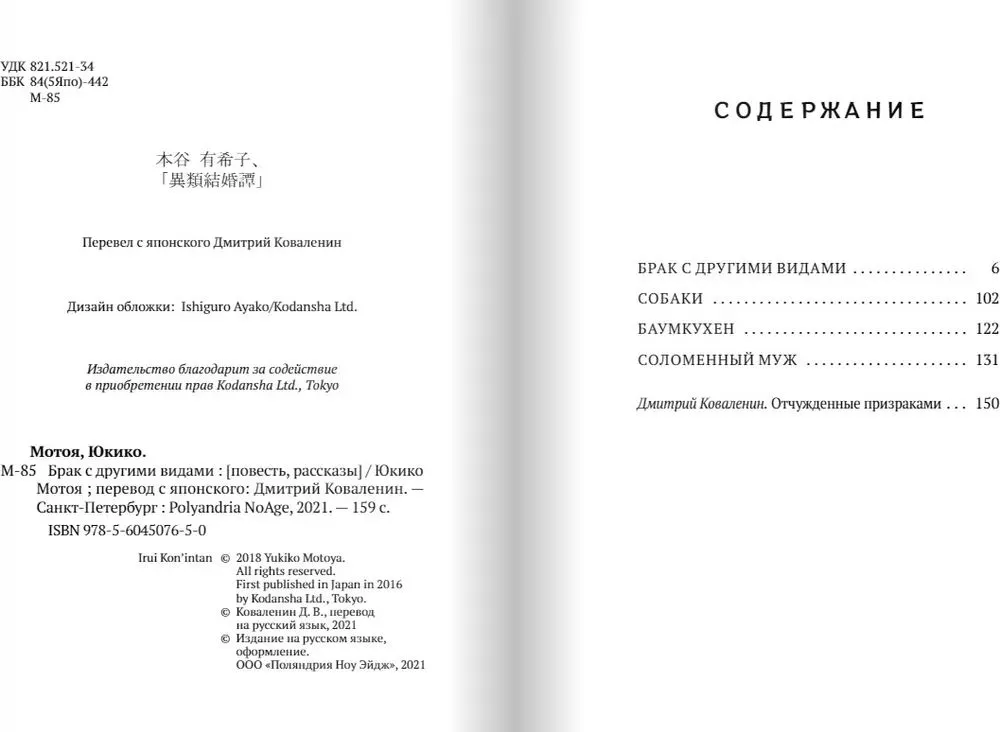 В повести и рассказах Юкико Мотои сливаются воедино магический реализм, абсурд, древние мифы и синтоистские легенды. В результате современная японская действительность предстает перед читателем своей самой сказочной, а главное — иносказательной стороной. Здесь мужчины и женщины — не равноправные, но разновидовые существа. И там, где они, кажется, все-таки сливаются воедино, — поверьте, так только кажется.