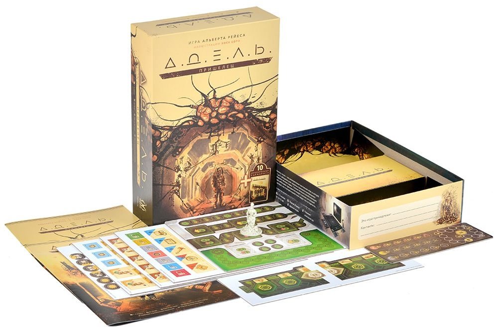 В этом дополнении вы найдёте полноценный модуль на 34 игроков, один из которых выступит в роли пришельца, а другие будут ему противостоять. Также вас ждут 6 одиночных и 4 кооперативных сценария для базовой игры "АДЕЛЬ". Вам предстоит отключить самоуничтожение корабля, высадиться на Марс, защититься от безумного робота Макса и даже... обнаружить предателя, которого АДЕЛЬ внедрила в вашу команду.
