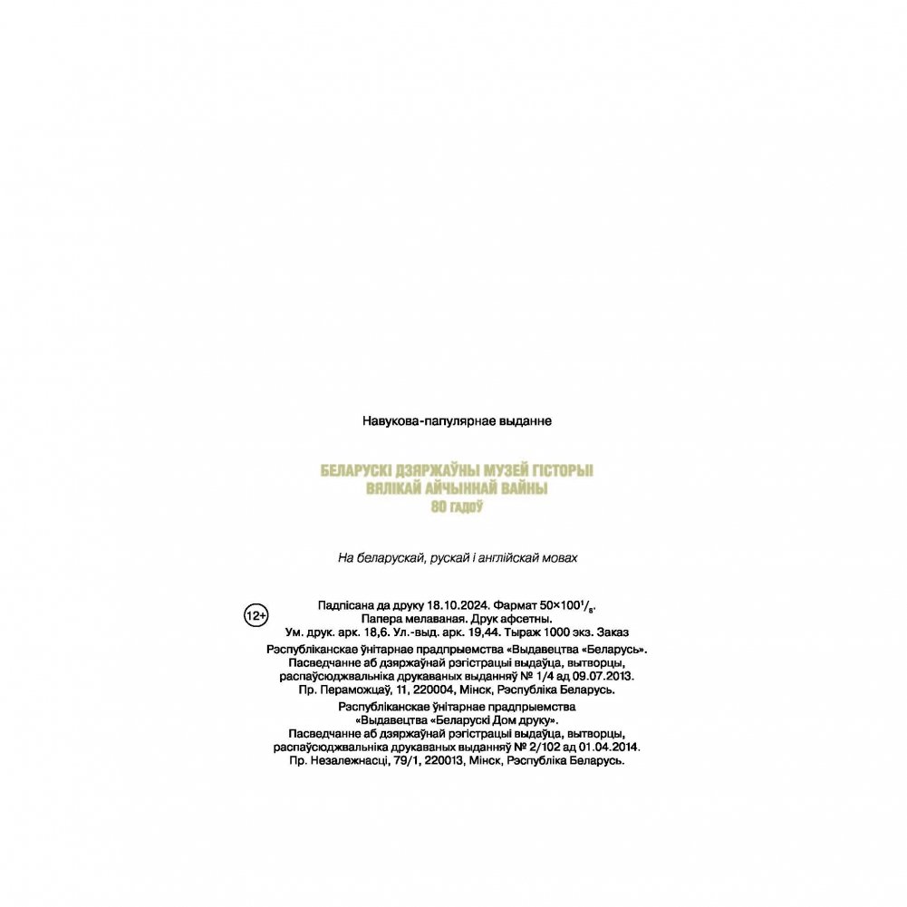 Кніга прысвечана 80-годдзю Беларускага дзяржаўнага музея гісторыі Вялікай Айчыннай вайны. На яе старонках расказваецца аб гісторыі стварэння музея, яго экспазіцыі, музейных калекцыях, філіялах. Чытач даведаецца аб найбольш цікавых рэліквіях Вялікай Айчыннай вайны, якія прадстаўлены ў экспазіціях і захоўваюцца ў фондах музея.