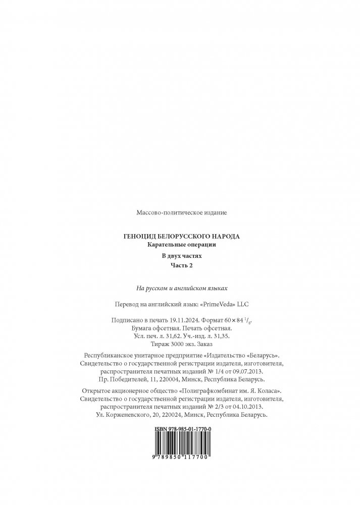 В издании представлены полученные в ходе расследования Генеральной прокуратуры Республики Беларусь уголовного дела о геноциде белорусского народа доказательства, в том числе ранее неизвестные общественности, массового уничтожения в ходе карательных операций нацистскими преступниками и их пособниками мирного населения оккупированных территорий БССР.