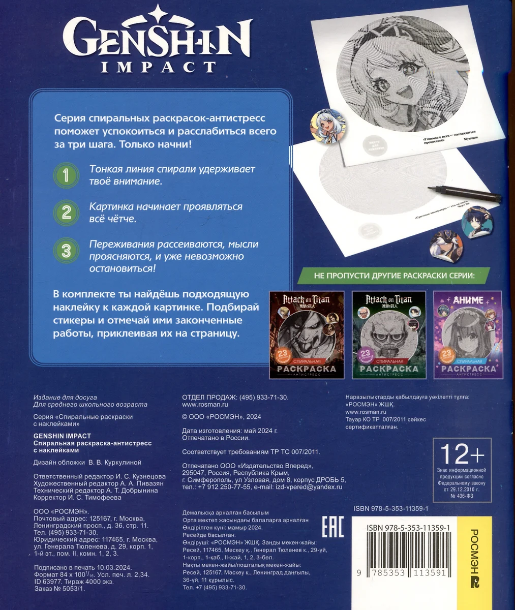 Genshin Impact. Спиральная раскраска-антистресс с наклейками