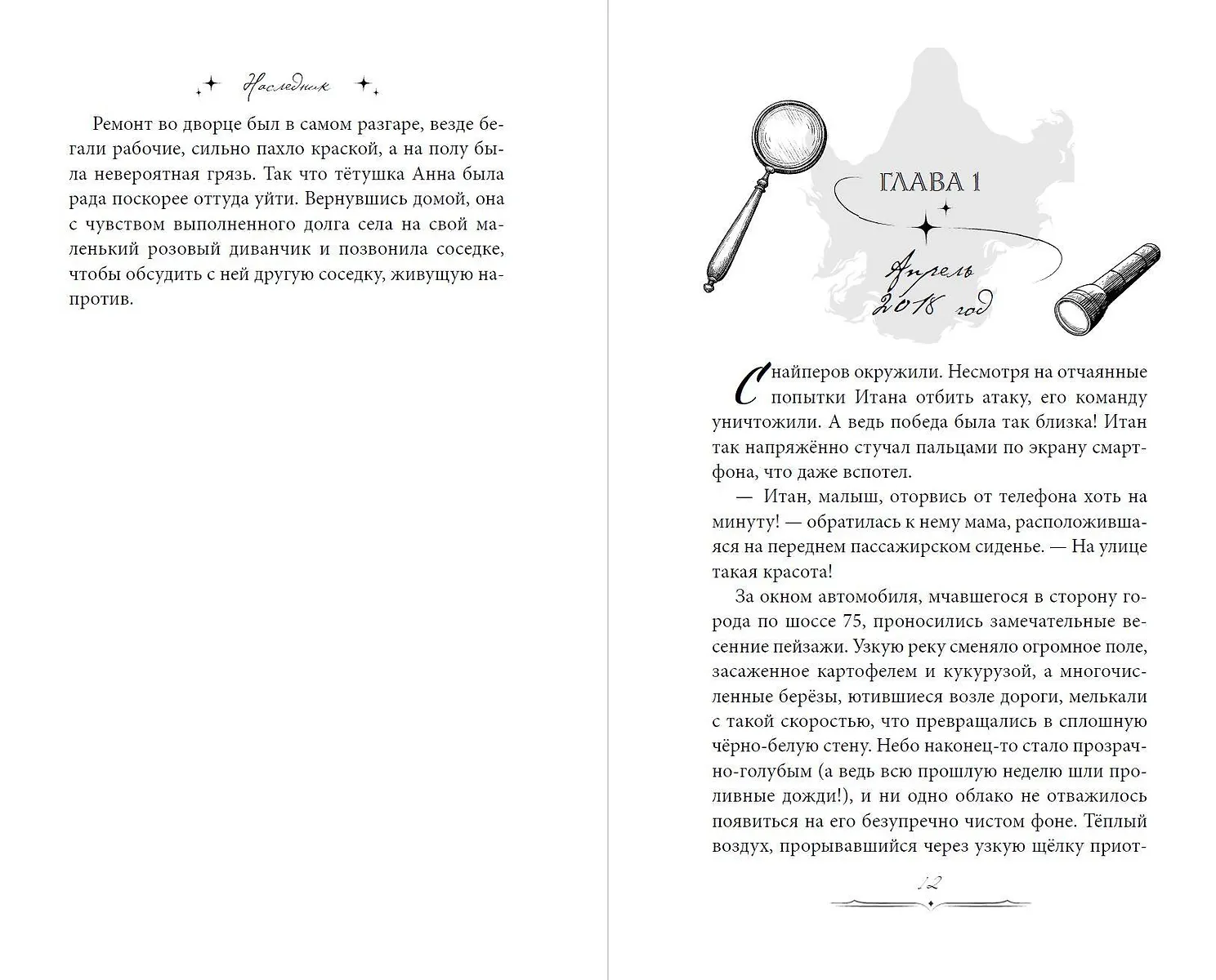Во время экскурсии по Королевскому дворцу школьник Итан находит старинную книгу сказок, все поля которой испещрены загадочными записями. Мечтая стать настоящим детективом, мальчик решает начать расследование. Но не подозревает, что его судьба переплетается с судьбой Ксанди — наследника престола, который также хочет раскрыть тайны древнего фолианта. Двух мальчиков разделяет не только статус, но и время — целых сто пять лет. Как раскрыть дело, если между вами временная пропасть? Что зашифровано в книге? Может, это заклинания против привидений из дворцового парка, или координаты места, где спрятаны сокровища? В ходе расследования мальчики столкнутся с жуткими событиями, чередой необъяснимых совпадений, интригами и предательством. Смогут ли они раскрыть все тайны, спрятанные в старой книге? И самое важное — окажется ли любовь и преданность сильнее ненависти и мести?