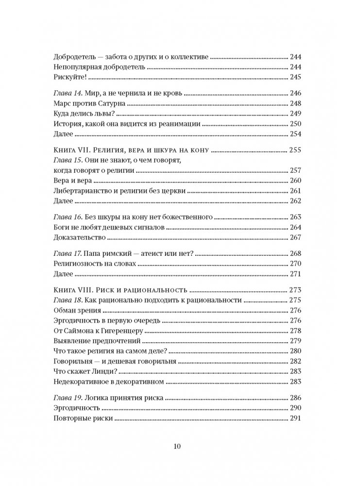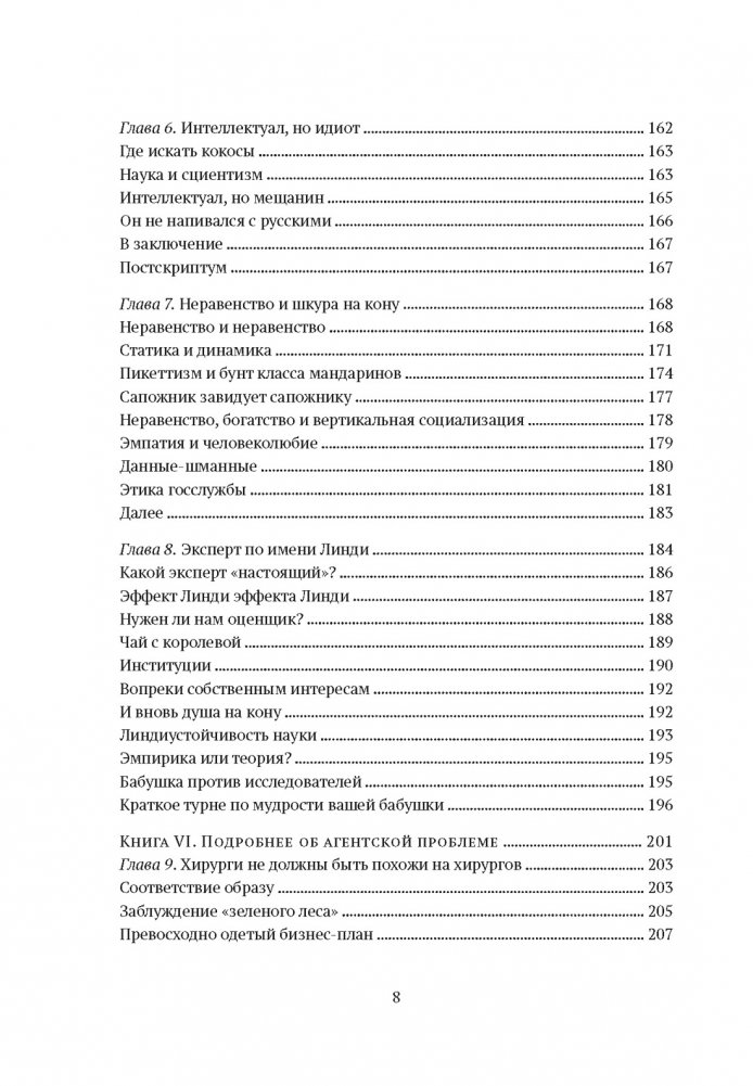 В своей резко провокационной и одновременно предельно прагматичной книге неподражаемый Нассим Талеб рассказывает, как важно идентифицировать и фильтровать чушь, отличать теорию от практики, поверхностную компетентность от настоящей. Вы узнаете, что такое рациональность в сложных системах и реальном мире, симметрия и асимметрия и в чем состоит логика принятия рисков. Наполняя новым смыслом привычные понятия, такие как «справедливое общество», «профессиональный успех», «личная ответственность», и не боясь задеть эго признанных кумиров, Талеб развенчивает лицемерие идеологов военных интервенций в Ирак и Ливию; фиаско нобелевских лауреатов по экономике, разоривших банки и инвестиционные фонды; лживых религиозных проповедников. На примерах Хаммурапи и Иисуса Христа, римских и византийских императоров, философов-стоиков и современных успешных бизнесменов Талеб показывает, что главное качество, объединяющее их всех, — «ставить на кон свою шкуру и душу», а не переносить риск на других.