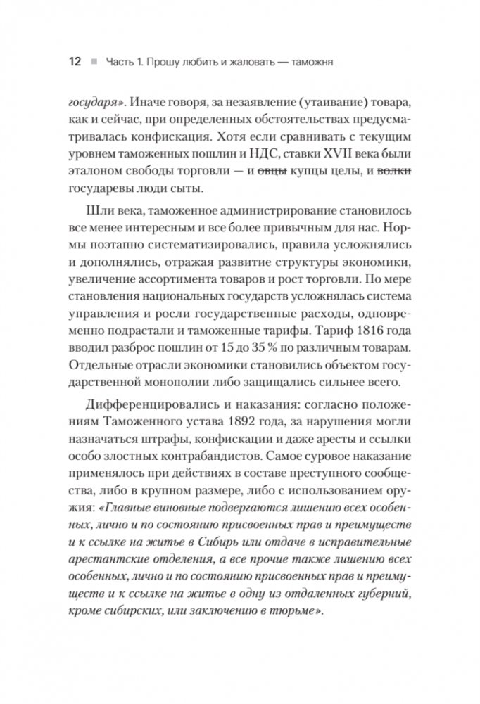 Книга не сулит чудес, но ставит вполне амбициозную цель не только понять логику таможни, но и научиться неукоснительно соблюдать взаимоисключающие параграфы свода требований государственных органов в самых разных обстоятельствах. Материалы собраны и изложены действующим специалистом крупного таможенного представителя, лично прошедшего непростой путь от помощника специалиста по таможенному оформлению до руководителя филиала.