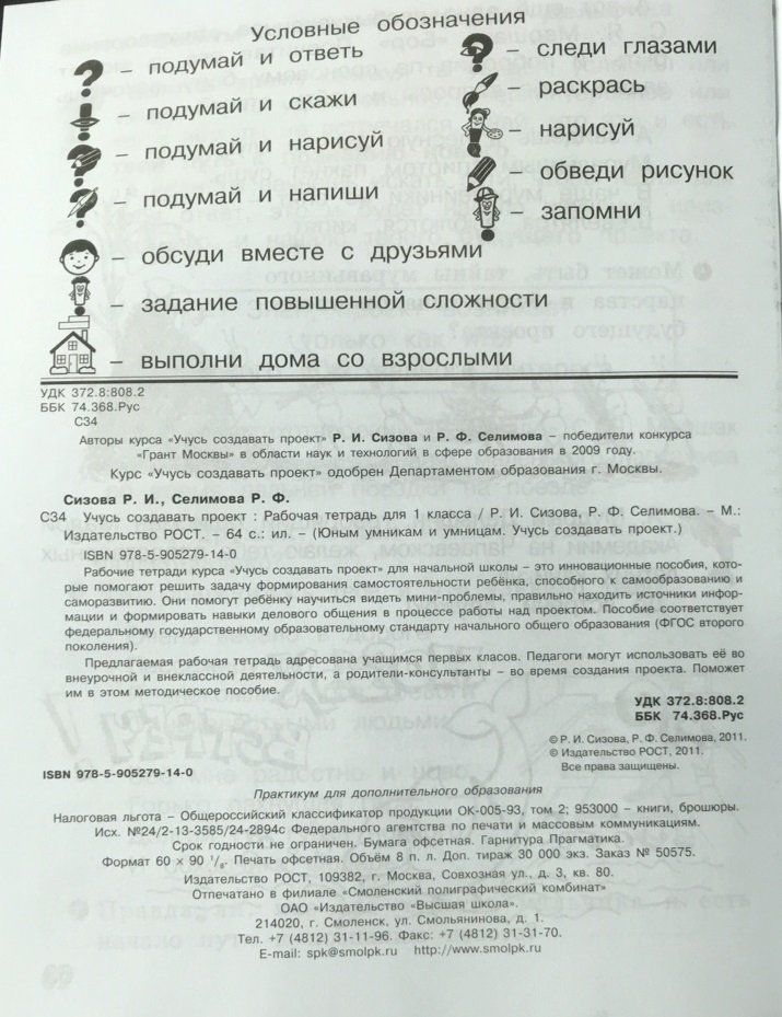 Учусь создавать проект. Рабочая тетрадь. 1 класс. ФГОС