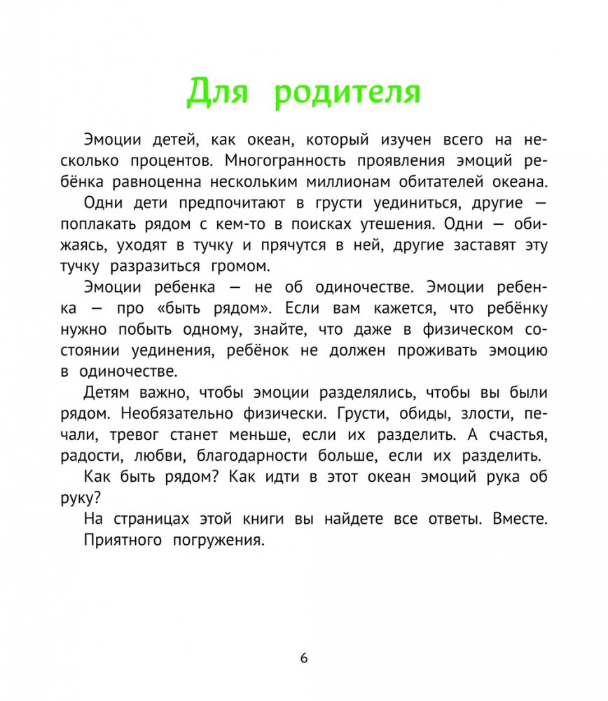 Представьте, что внутренний мир ребёнка похож на домик, цвет стен для которого выбирают родители. В ваших силах разукрасить их в тона, полные любви и счастья. Эта книга в руках умелого и осознанного родителя превратится в краску безусловной любви и заботы. Можете начинать красить стены домика ребёнка. Ваша кисть — работа над эмоциональным интеллектом. Задача книги — помочь бережно и экологично разукрасить стены внутреннего мира ребёнка так, чтобы ему в нем было сказочно и уютно.
