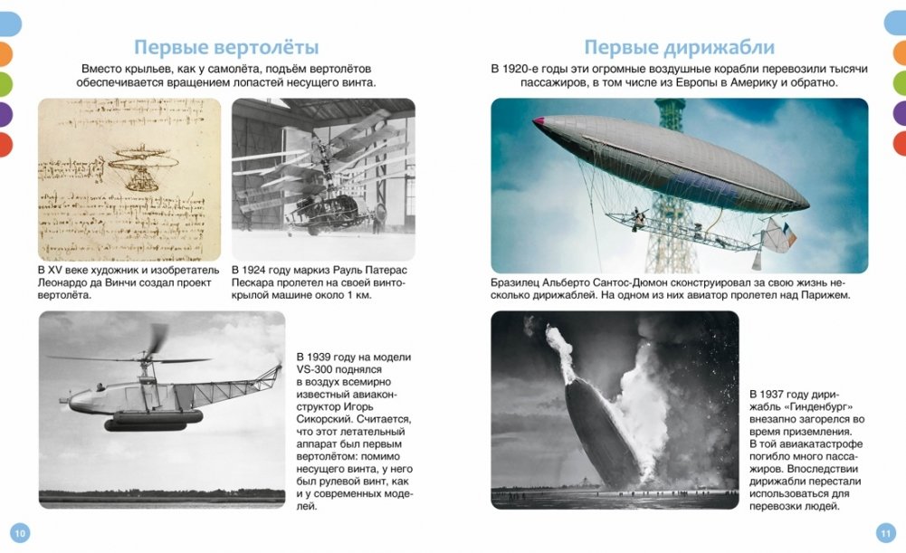 В этой книге рассказывается об истории авиации. Юные читатели узнают, чем прославились братья Орвилл и Уилбер Райт, какой размах крыла был у «Боинга-707», для чего используются аэродинамические тормоза, рассмотрят дирижабли, истребители, пассажирские самолёты, а также выяснят, что такое несущий винт и кто сконструировал первый воздушный шар. В книгах серии — только самая актуальная информация и самые современные иллюстрации! И это ещё не всё: в конце каждой книжки собраны увлекательные задания и игры, которые помогут весело провести время и повторить изученное.