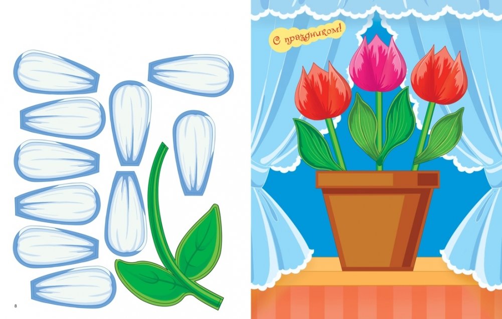 С помощью этой книги вы сможете собрать 4 объёмные аппликации для любого праздника или конкурса: в школу, детский сад или в подарок любимому человеку на 8 Марта. Всё, что нужно, — это клей и ножницы! Эта книга не только подарит вам время совместного творчества и отдыха, но и поможет развить у ребёнка пространственное и креативное мышление, мелкую моторику и терпение. Ребёнок сможет расширить свои творческие горизонты и узнает, как важны усидчивость и внимательность в процессе обучения. Все эти навыки играют важную роль в формировании гармоничной и многогранной личности.