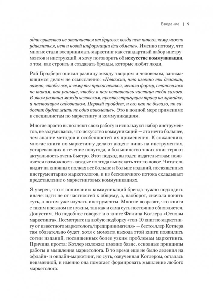Книга посвящена формированию мышления специалистов, работающих в маркетинге и рекламе. Автор – эксперт по коммуникациям, журналист и писатель – разбирает архитектуру бизнеса, формирует четкое понимание того, какие задачи решают маркетинговые коммуникации, объясняет правильное их использование, подробно иллюстрирует на примерах как решаются те или иные цели.