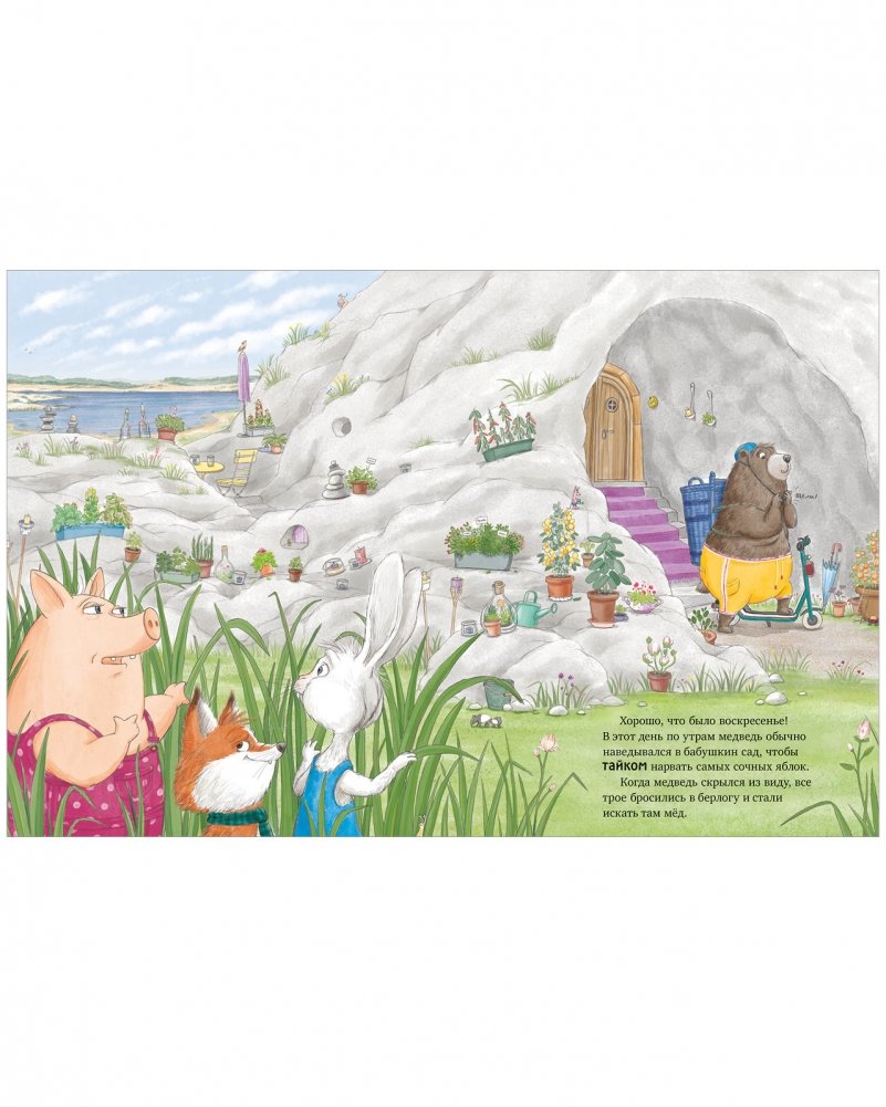 «Как медведь и свинка учились делиться» — книжка-картинка с потрясающими иллюстрациями, которые захочется пересматривать снова и снова, отыскивая все новые детали. Герои живые и эмоциональные, они помогут маленьким читателям научиться понимать чувства и фантазировать.