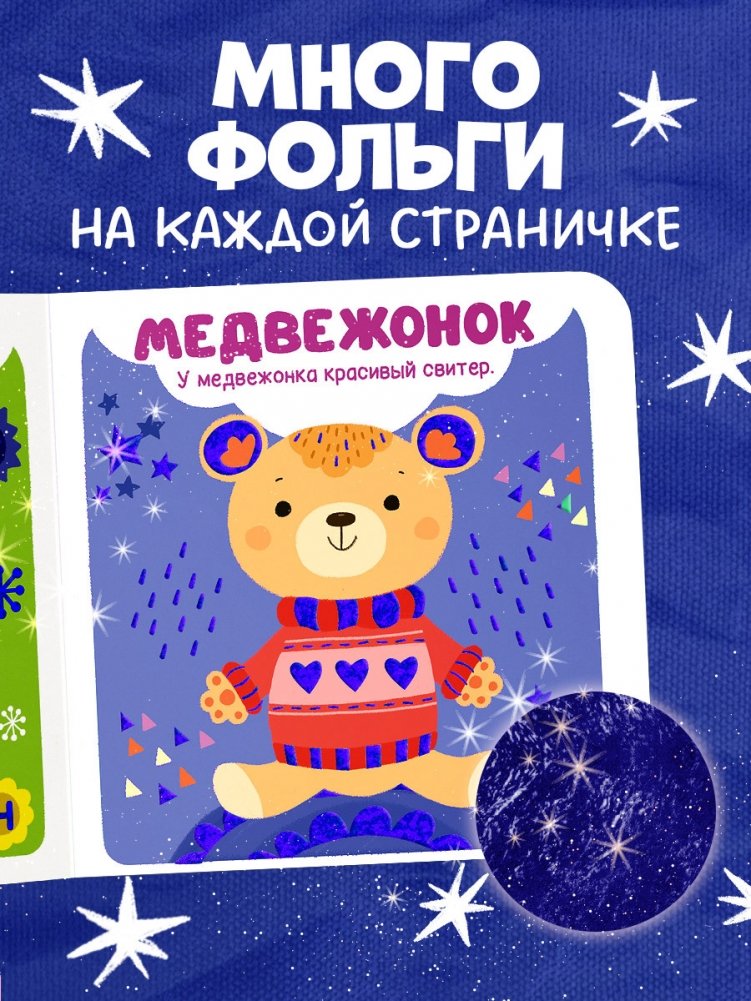Книжка «Первые слова» со сверкающей фольгой, с картинками, которые подарят множество идей для игр, — идеальная книга для детей 1-3 лет для развития моторики, речи, внимания и памяти.