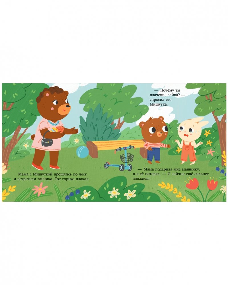 Сказка от Елены Ульевой, которая покажет малышу на примере героя — Мишутки, — как правильно делиться игрушками, спрашивать разрешения и почему не нужно брать чужие вещи.