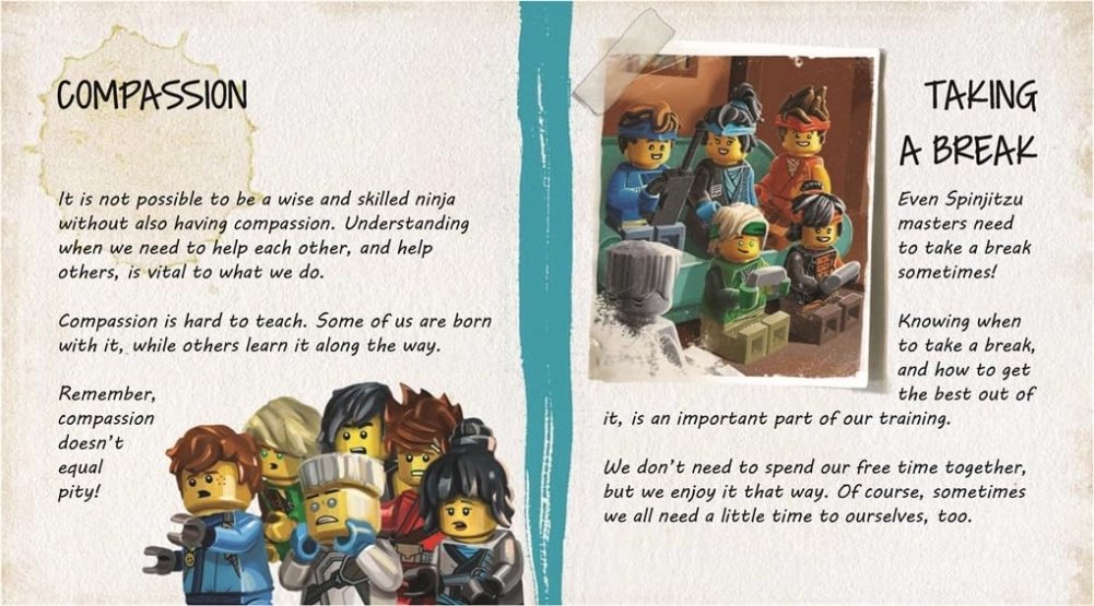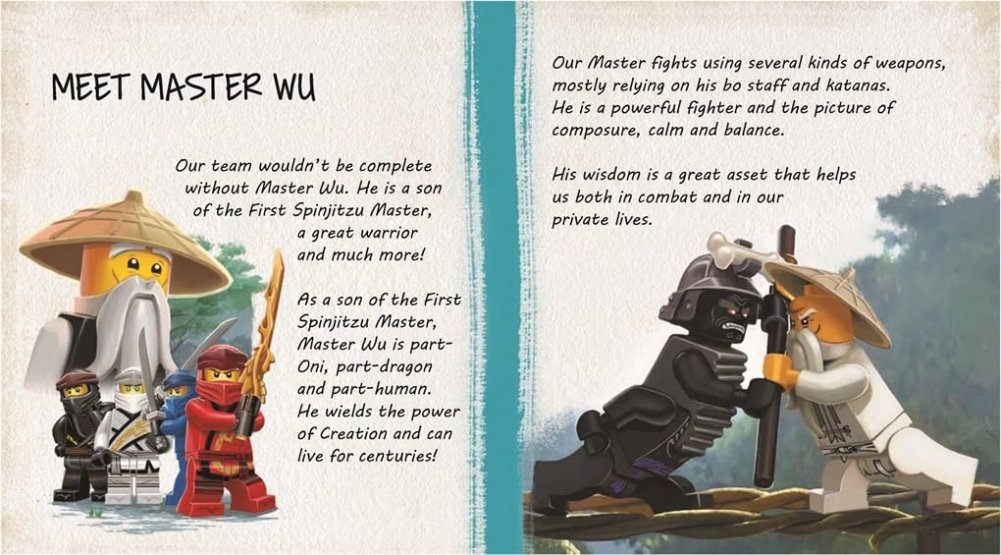 Build your Nya minifigure before exploring the two books and discovering the secrets of Spinjitzu. Meet Kai, Cole, Jay, Zane, Lloyd and Master Wu, find out about their friends and enemies, and discover how their training turned them into ninja masters.