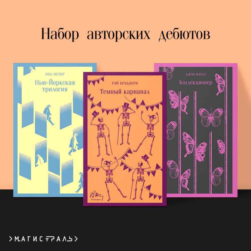 Набор авторских дебютов (из 3-х книг: "Темный карнавал" Р.Брэдбери, "Нью-Йоркская трилогия" П.Остер, "Коллекционер" Дж.Фаулз)
