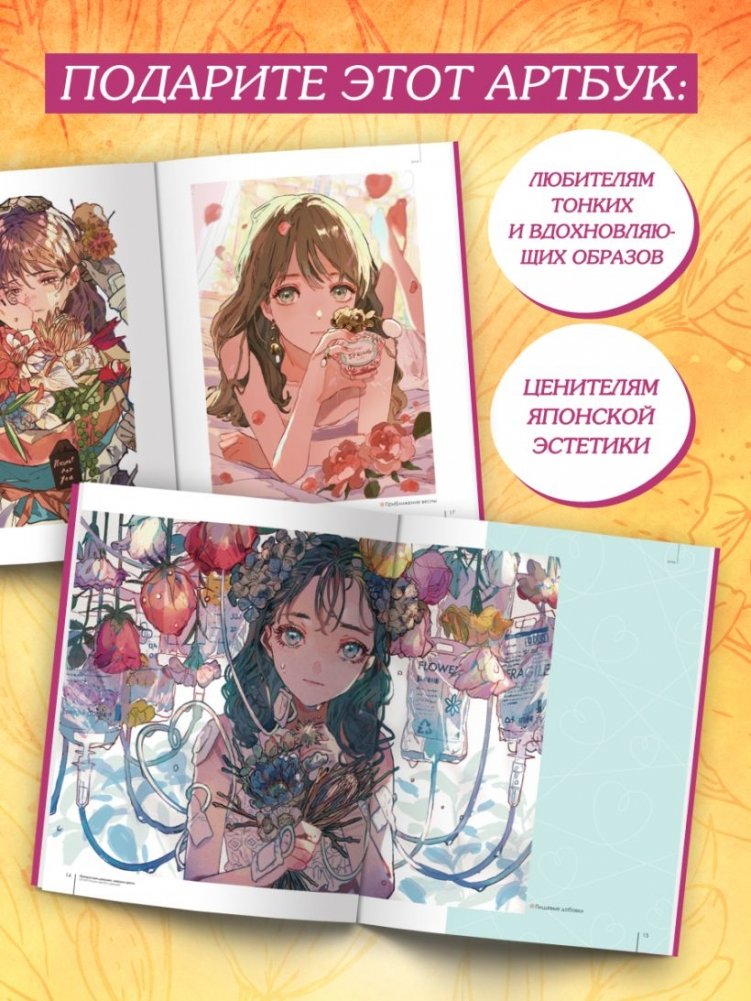 В этом артбуке собраны иллюстрации десяти японских художников, объединенные традиционными для Японии темами – быстротечности бытия и исчезающей красоты. Авторы размышляют в своих работах над ними через образы девушек и цветов. На страницах издания собраны как иллюстрации из личных архивов художников, так и крупные проекты, созданные на заказ. В конце вы найдете интервью с каждым из участников данного издания, где они рассуждают о своем творчестве и работах, а также делятся секретами своих техник. Этот артбук – красота, на которую смотришь, затаив дыхание.