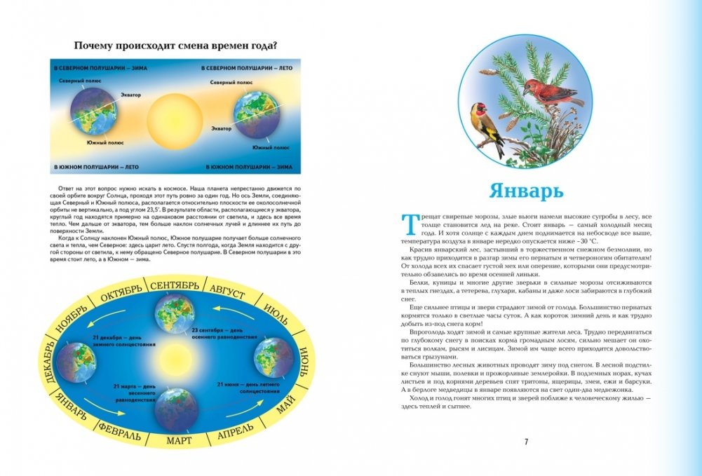 Перед вами уникальная энциклопедия, которая дает полное представление о флоре и фауне средней полосы России, а также позволяет проследить за сезонными изменениями природы. Юные читатели увидят, как один и тот же пейзаж меняется в зависимости от времени года – с января по декабрь, познакомятся с животным и растительным миром этой местности, узнают о приметах каждого месяца. Красочные иллюстрации помогут совершить интересную и познавательную экскурсию по временам года, научат любить родную природу.