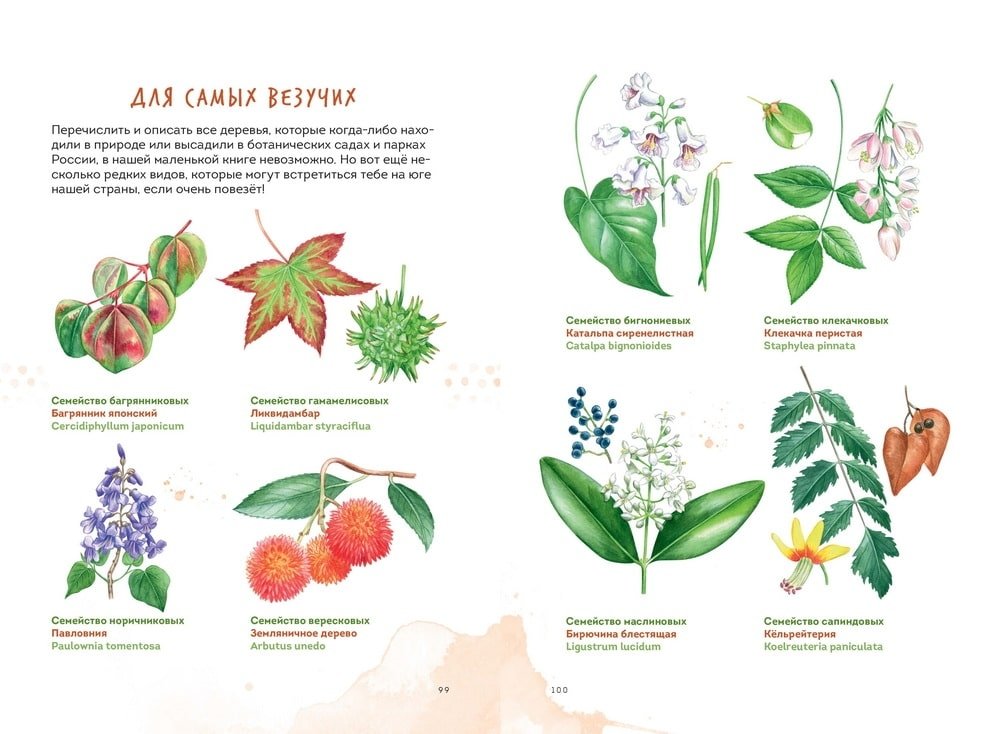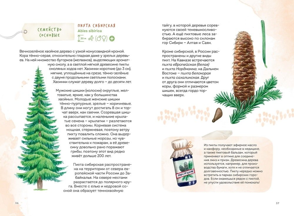 Насыщенный атлас-определитель российских деревьев с невероятными реалистичными иллюстрациями.