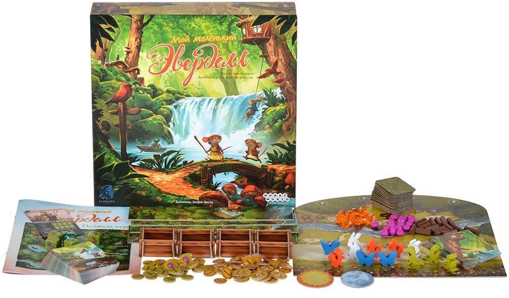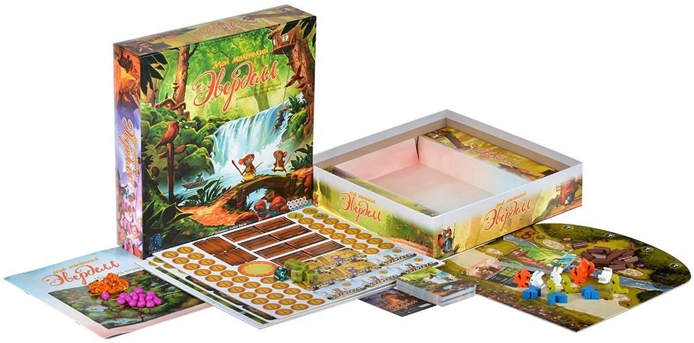 Также в составе игры бонусное расширение "Детский сад": 7 новых карт для "Эверделла" и 4 новые карты для "Моего маленького Эверделла"! А ещё... 4 ящичка для ресурсов и 36 дополнительных жетонов ресурсов!