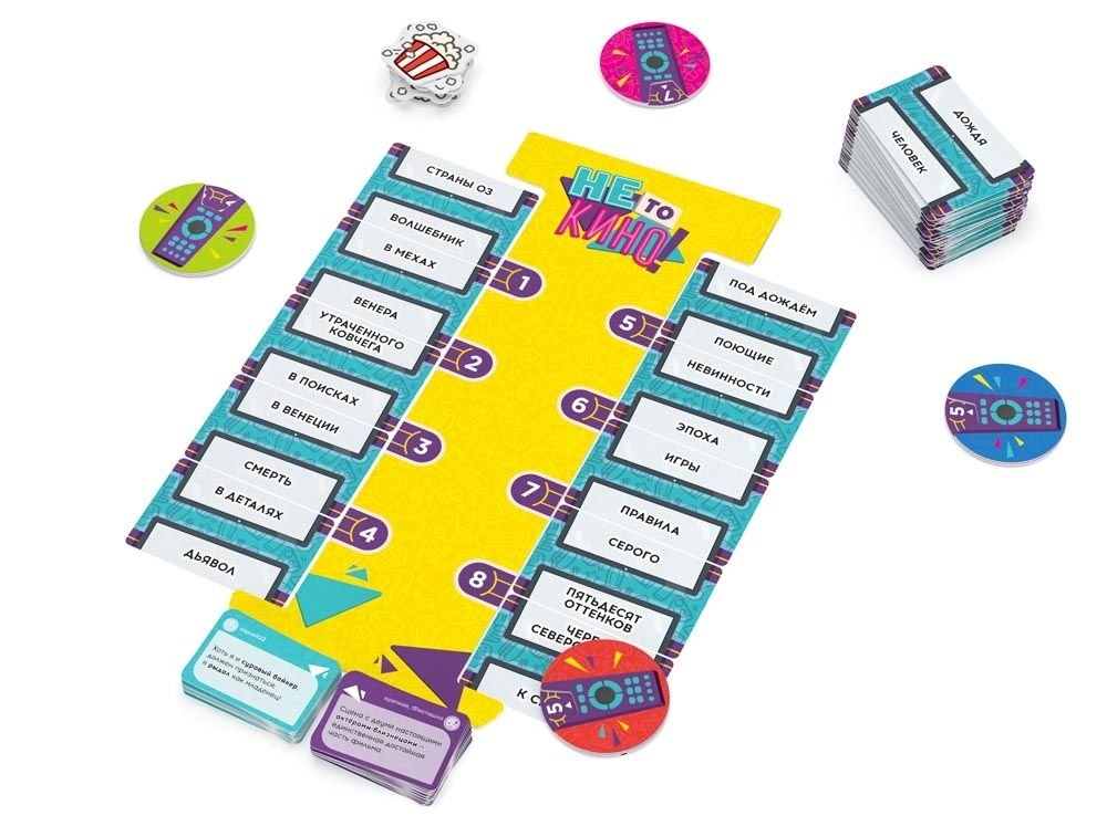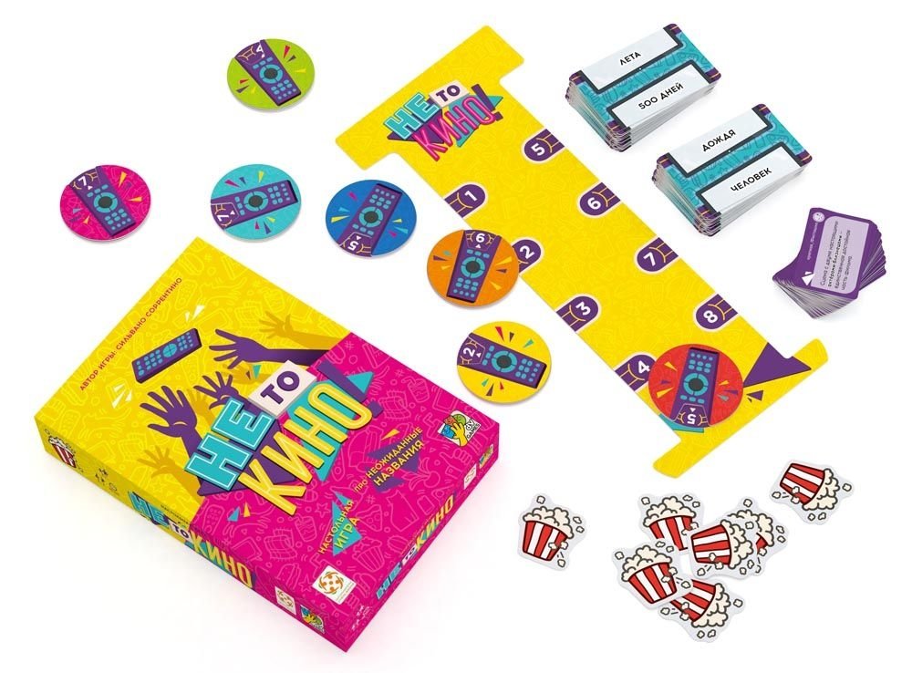 Киновечер с друзьями — что может быть лучше? В игре «Не то кино!» вам предстоит по одному отбрасывать фильмы, которые меньше всего соответствуют положительной и отрицательной рецензиям, которые выпали в этом раунде, пока вы не выберете то самое кино!