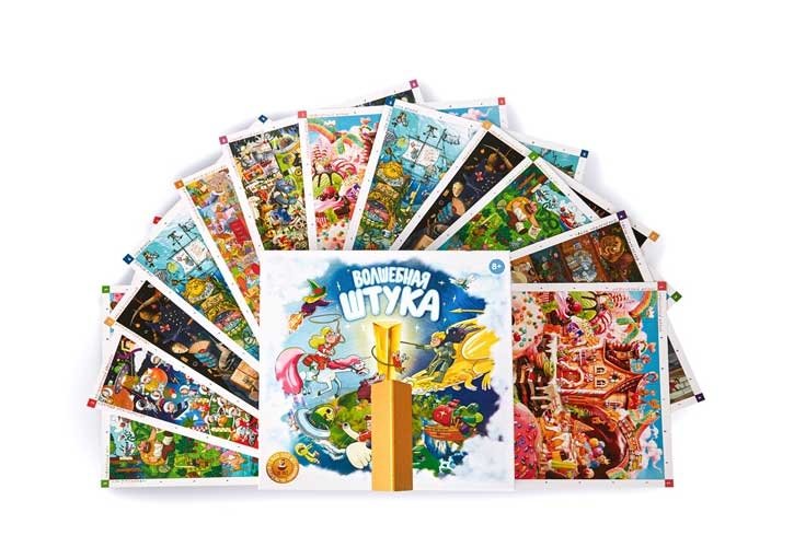 В "Волшебной ШТУКЕ" 8 сказочных полей-вселенных, созданных художниками под руководством иллюстраторского агентства Bang! Bang! У каждого поля своя неповторимая атмосфера, так что каждый найдет что-то на свой вкус. А еще поля пронумерованы от простого к сложному, чтобы погружаться в мир "Штуки" было комфортно игрокам любого возраста, с разным опытом.